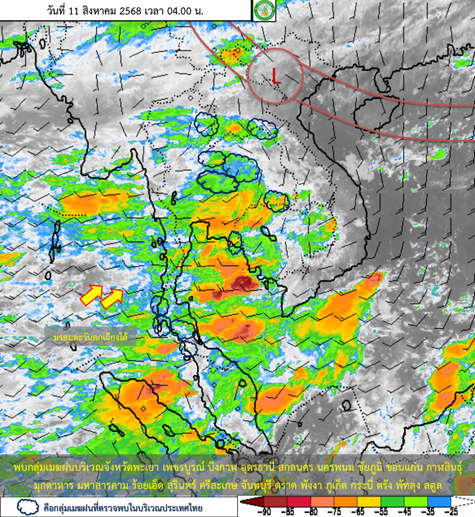 ลักษณะอากาศทั่วไป : พยากรณ์อากาศ 24 ชั่วโมงข้างหน้า ภาคเหนือ ภาคตะวันออกเฉียงเหนือ ภาคตะวันออก และภาคใต้ฝั่งตะวันตก มีฝนตกหนักบางแห่ง ขอให้ประชาชนในบริเวณดังกล่าวระวังอันตรายจากฝนตกหนักและฝนที่ตกสะสม ซึ่งอาจทำให้เกิดน้ำท่วมฉับพลันและน้ำป่าไหลหลาก โดยเฉพาะพื้นที่ลาดเชิงเขาใกล้ทางน้ำไหลผ่านและพื้นที่ลุ่มไว้ด้วย เนื่องจากมีร่องมรสุมพาดผ่านประเทศลาวตอนบน และประเทศเวียดนามตอนบน ประกอบกับมรสุมตะวันตกเฉียงใต้ที่พัดปกคลุมทะเลอันดามัน ประเทศไทย และอ่าวไทยมีกำลังแรงขึ้น