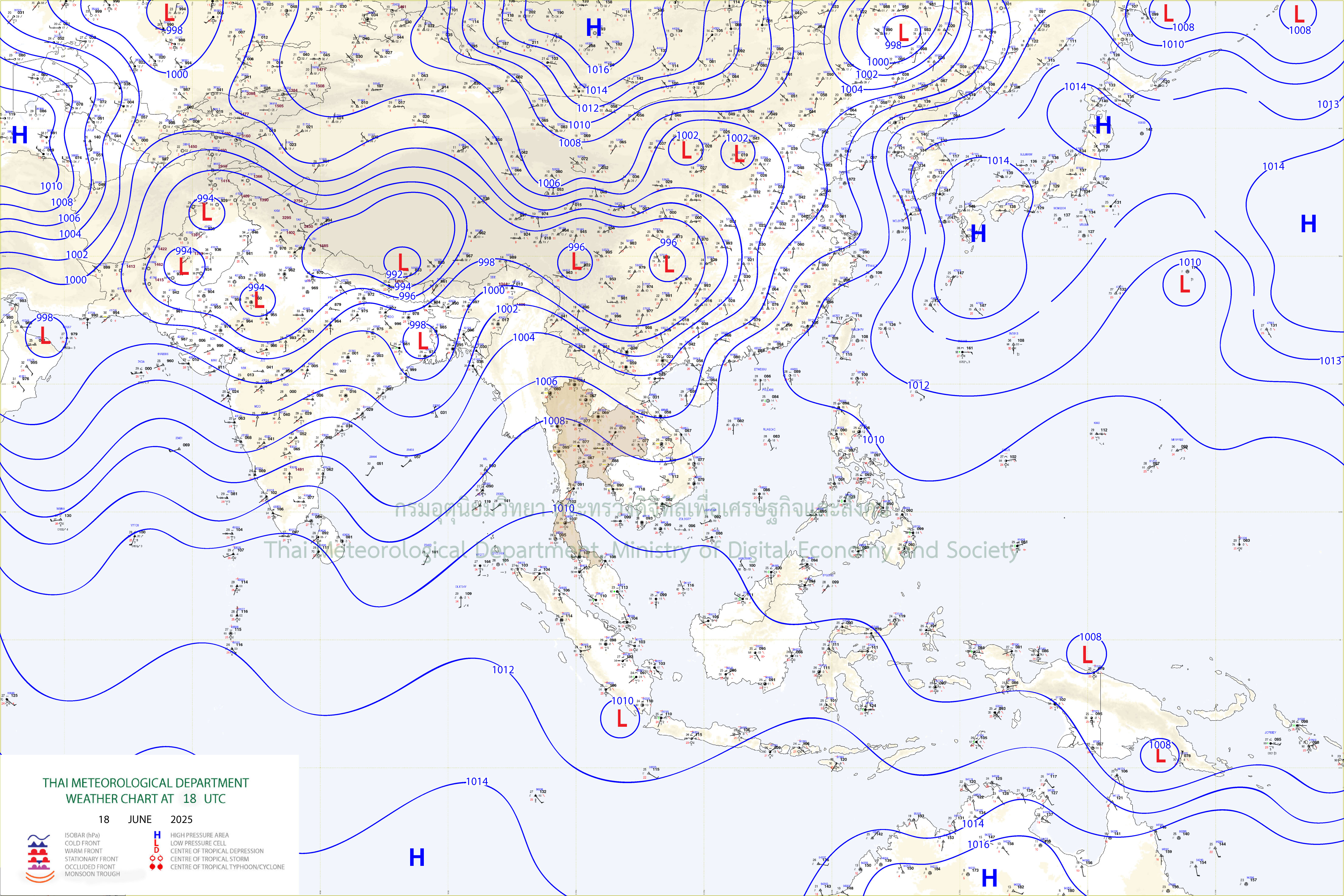 ลักษณะอากาศทั่วไป : พยากรณ์อากาศ 24 ชั่วโมงข้างหน้า บริเวณภาคเหนือ ภาคตะวันออกเฉียงเหนือตอนบน และภาคใต้ฝั่งตะวันตก มีการกระจายของฝนฟ้าคะนองมากกว่าภาคอื่นๆ เนื่องจากมรสุมตะวันตกเฉียงใต้พัดปกคลุมทะเลอันดามัน ประเทศไทยและอ่าวไทย สำหรับคลื่นลมบริเวณทะเลอันดามันตอนบนมีกำลังปานกลาง โดยมีคลื่นสูง 1-2 เมตร บริเวณที่มีฝนฟ้าคะนองคลื่นสูงมากกว่า 2 เมตร ขอให้ชาวเรือบริเวณทะเลอันดามันและอ่าวไทยเดินเรือด้วยความระมัดระวัง และหลีกเลี่ยงการเดินเรือในบริเวณที่มีฝนฟ้าคะนอง