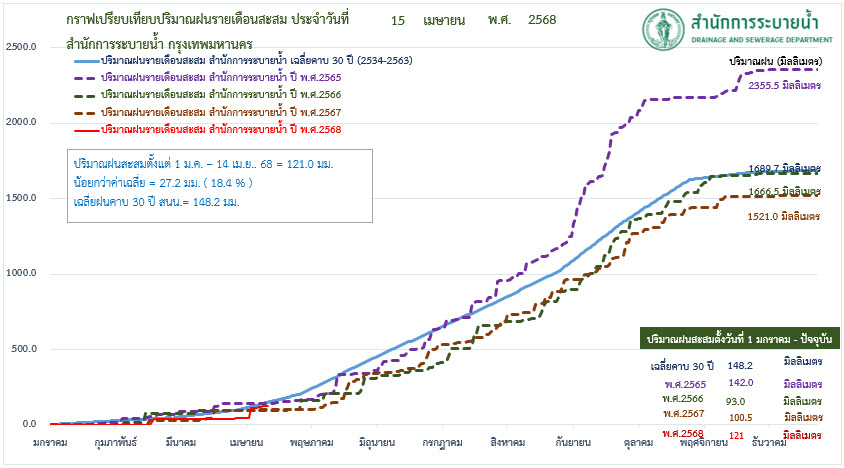 กราฟเปรียบเทียบปริมาณฝนรายเดือนสะสม
